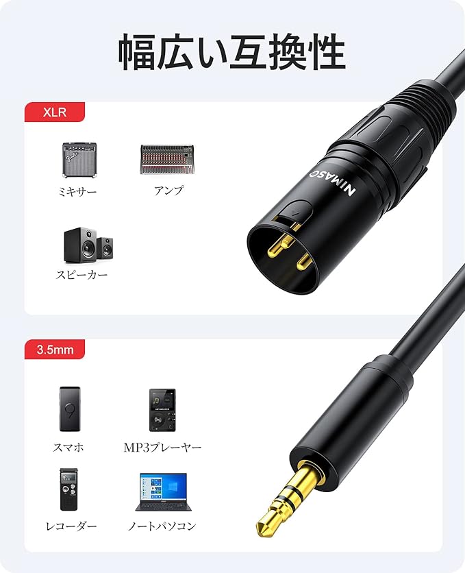NIMASO 3.5mm (オス) to XLR (オス) 変換ケーブル アンバランス接続 マイクケーブル 1m NCA22L632