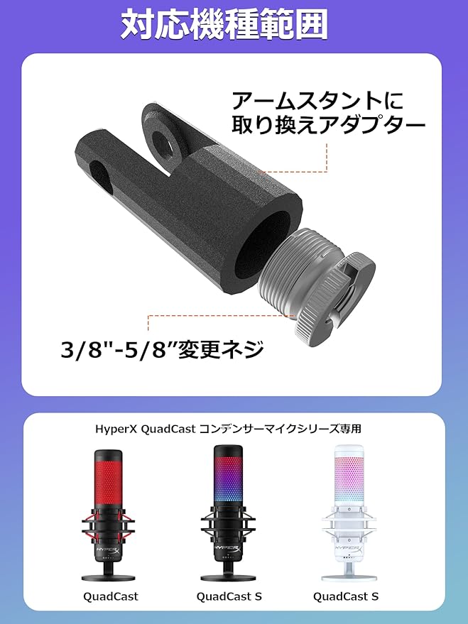 HyperX QuadCast/HyperX QuadCast S用マイクマウントアダプター HyperXマイク交換用アダプター 3/8"-5/8"インチ変換ネジ付き 取り付け簡単 HyperXマイク専用アダプター マイクスタンド3/8インチHyperXブームアーム