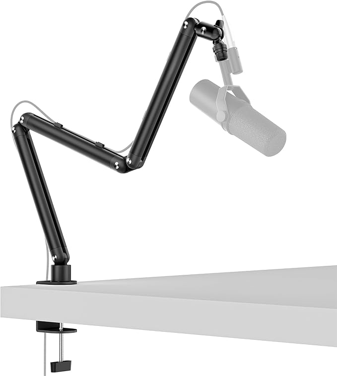 マイクブームアーム マイクスタンド カメラアーム アルミ製 耐荷重1.2KG コンデンサーマイク用 一眼カメラ/LED撮影ライト1/4インチ対応 角度調節可能 ケーブル収納 マイククリップ付属 折りたたみ 収納便利