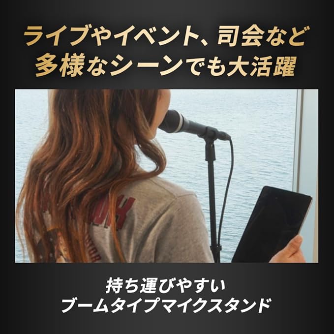 ■ブームアーム付マイクスタンド ■カラー:ブラック ■先端ネジ径:3/8インチ ■付属品:マイクホルダー(3/8インチ→5/8インチ変換ネジ取付済) ■高さ調整範囲:約96cm~約155cm ■ブームアーム長さ:約76cm ■折り畳み時全長:約95cm ■重量:約1.5kg