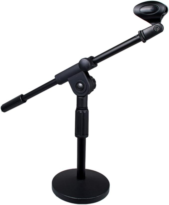 高さ、角度調整可能、コンパクトで卓上使用に最適なマイクスタンドです。