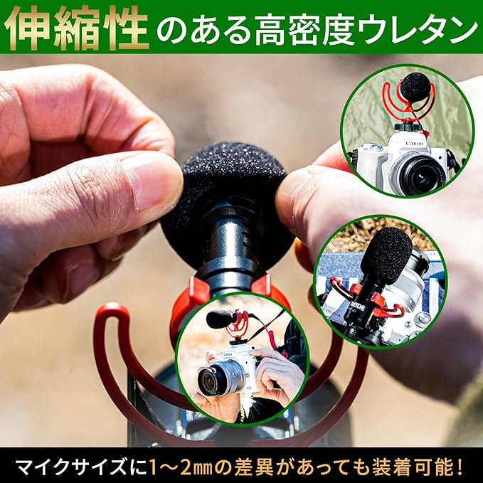 [GONKISS] マイクスポンジ マイク風防 動画撮影 オンカメラマイクなど 4個セット 黒