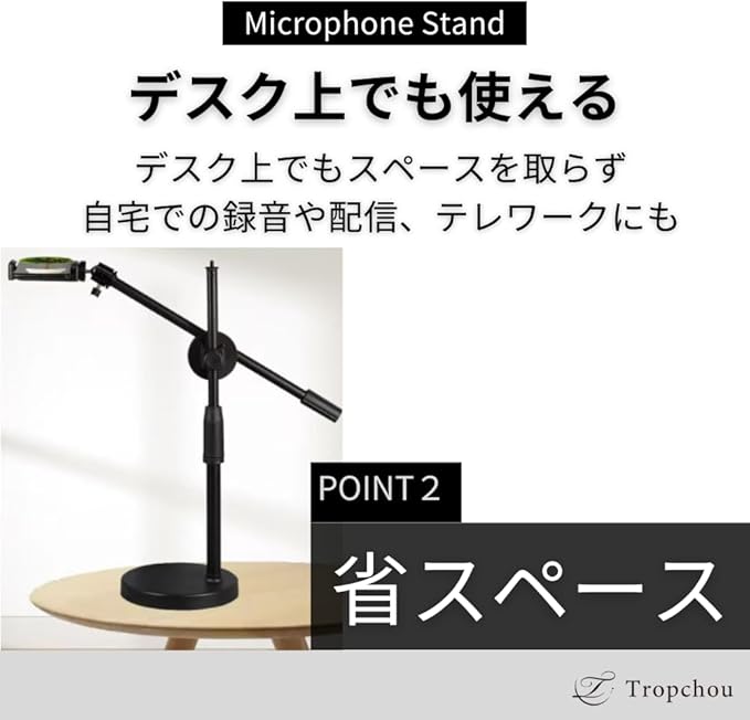 Tropchou マイクスタンド 卓上 ストレート 角度 調整可 マイクホルダー付き 練習用 黒