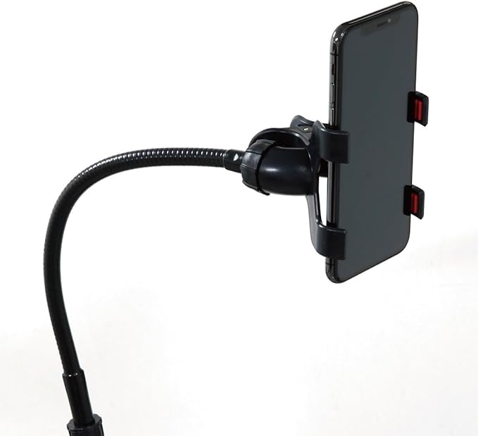 自由に位置を調節できる グースネック と スマートフォンホルダー