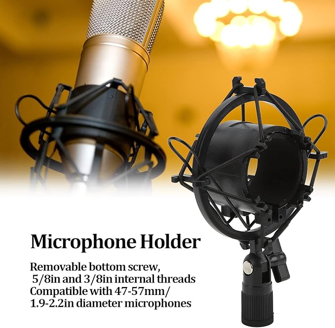 強力なツール:取り外し可能な下ネジ、5/8インチおよび3/8インチのめねじ、直径47‑57mm / 1.9‑2.2インチのマイクと互換性があり、マイクを固定および保護するためのスポンジパッドがあります。