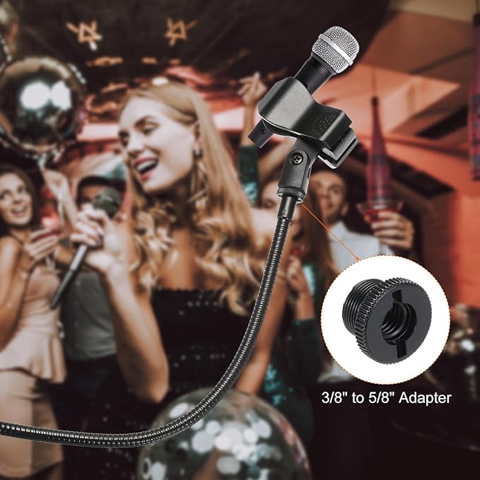 2. 柔軟で曲げられるグースネックは 180 度曲げることができ、あらゆる角度に調整できるため、さまざまなニーズに対応できます。マイク スプリング クリップは 3/8 "から 5/8 "へのアダプターを使用して設計されているため、さまざまなマイクに合わせてサイズを簡単に変換できます。