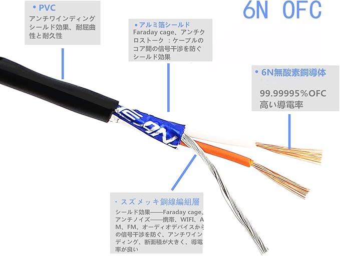 4pin ミニ xlr : 6N OFC 無酸素銅 (6N Oxygen Free Copper)を採用する mini xlr 4pin cable。低音域と中音域の音を暖め、低音域に深みと広さを与え、中音域はクリアで豊かである ミニ xlr 4 ピン 変換 ケーブル 。柔らかく、高品質の材料で耐久性があります
