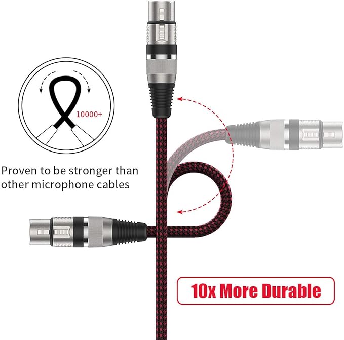 【混合PET網】私たちのバランスマイクケーブルは銅で編んでいます。雑音を予防する効果があります。三重シールドはEMI/RFIに抵抗できます。混合PETネットはケーブルに最大の引張力を提供できます。XLR TRSケーブル は10000回以上曲げられます。とても柔らかいです。電線は綿糸で包まれている。