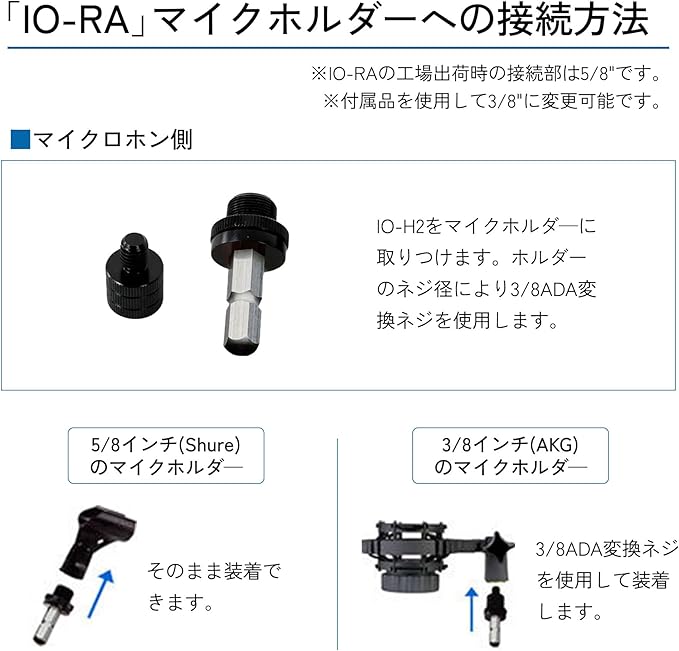 ※IO-H、3/8インチ変換ネジ、六角レンチ、マイクスタンド取付用3/8インチ変換ネジ付属