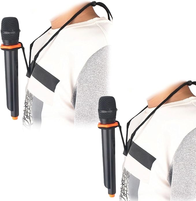 【簡単装着&調整可能】 マイクをホルダーに入れるだけの簡単装着。ストラップの長さでマイクの位置を自由に調整できるため、最適なポジションで使用可能です。これにより、手持ちマイクの煩わしさから解放され、両手を自由に使える便利さが得られます。(画像中のマイクは商品に含まれません)