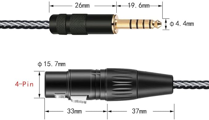 4 ピン xlr :24k金メッキ4pin xlr のプラグは純銅を採用します。錆びにくい、経年変化に強い。4.4mmジャックは最良な信号伝送を実現し、長続きする耐久性に優れた導電率を提供します。高域の滑らかさや中低域の厚みを感じられます 。きれい、エレガント、華やいに見えます。優れた耐食性と良い耐摩耗性、電気抵抗が低いです。極端な温度でも安定性と耐久性を持ちます。10000回以上の挿入および引抜試験に合格したxlr 4.4 変換 ケーブルです