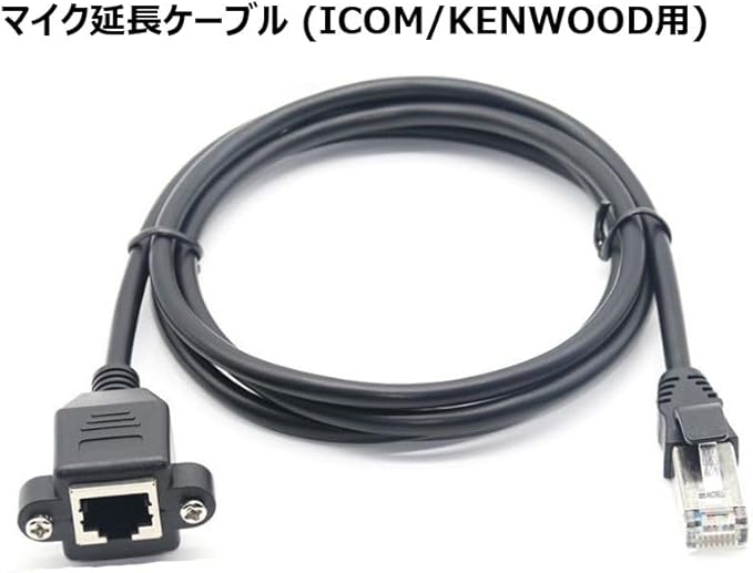 ICOM、KENWOODの無線機器で使用できますマイク延長ケーブルの出品です。 現行のマイクのケーブル長が不足している際にご使用頂けます。 ケーブル長 : 1.5m コネクタ形状 : 8ピン モジュラータイプ