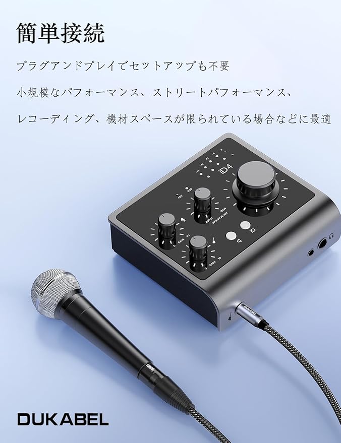 【簡単接続】ギター、ベース、キーボードなどの高インピーダンス・アンバランス楽器/機器の6.35mm(1/4インチ)出力を、ミキサー、レコーディングサウンドカード、アクティブスピーカーのXLRマイク/ライン入力への接続に適した低インピーダンス・バランス信号に直接変換します。ライブ演奏、急なレコーディング、一時的なシステム構築時の手間を省き、「ワンライン・ダイレクトアクセス」を実現します。