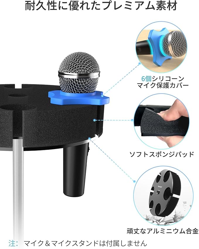 マイクホルダー マイクフックスタンドブラケット ホームオフィス用 有線・ワイヤレス/ハンドヘルド・ダイナミックマイク用 (最大6本対応) ブラック