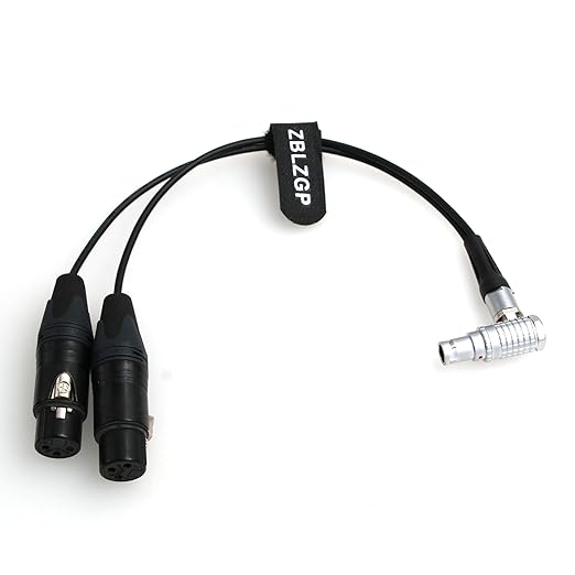 オーディオブレークアウト入力ケーブル 10ピンからデュアル3ピン XLRメス Atomos Shogun Flame Monitor レコーダー用 (エルボプラグケーブル)