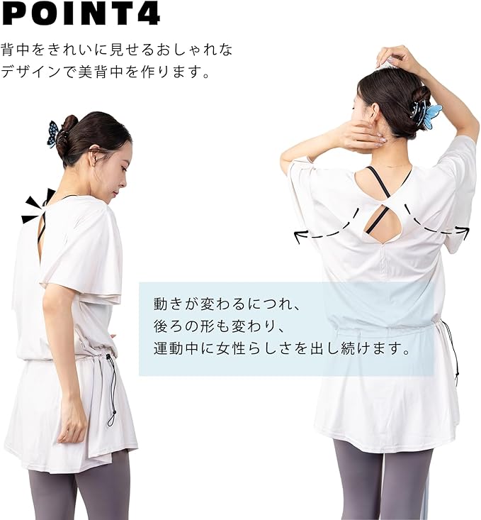 [iito.seasons] ヨガウェア 背中開き スカート トップス 丈長め ゆったり フィットネスウェア 体型カバー めくれない ロング丈 冷感シャツ 薄手 吸汗 速乾 UVカット 紫外線対策 おしゃれ 人気 | LEAD-SHOP