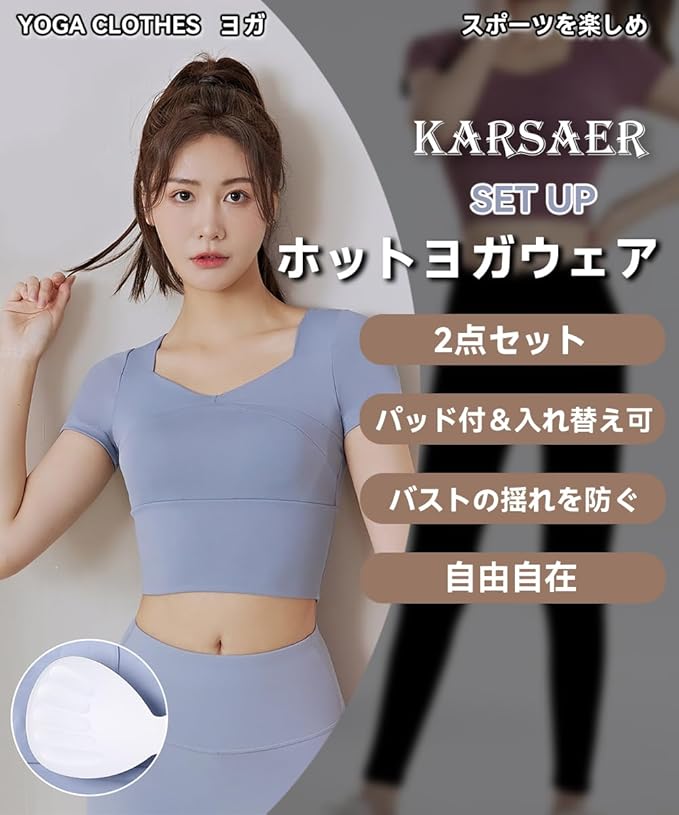 [Karsaer] ヨガウェア 上下セット レディース ピラティスウェア 半袖 スリムフィット ハイウエストヨガパンツ タイツ お腹引き締め ヨガウェア おしゃれ 通気・伸縮性 吸汗速乾 トレーニングウェア カップ付き レディース ジムウェア A0013 | LEAD-SHOP