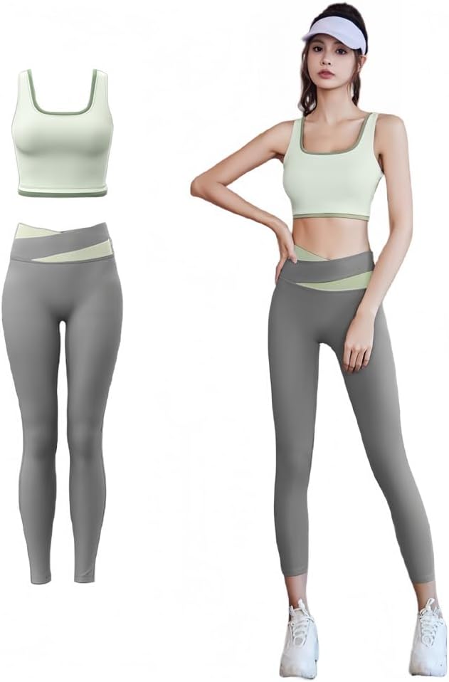 [Ghankga] スポーツブラ レディース 揺れない 上下セット ヨガパンツ ハイウエスト ヨガブラ ハイサポート ノンワイヤー ブラジャー トレーニング 吸汗速乾 伸縮性 おしゃれ 完璧な形状 快適な動き