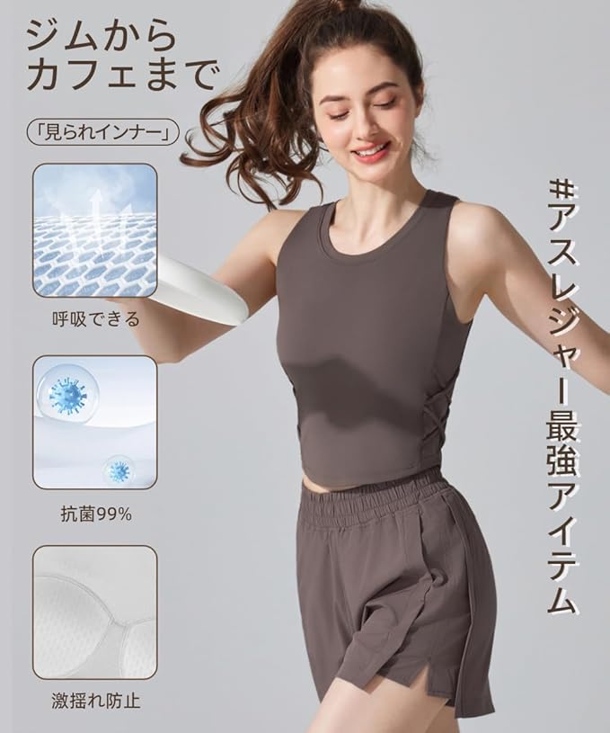 [Karsaer]ヨガウェア タンクトップ レディース 短め ヨガトップス カップ付き 揺れない スポーツタンクトップ 可愛い おしゃれ 吸汗速乾 通気性 伸縮性 抗菌 体型カバー スポーツウェア スポーツブラ ホットヨガウェア ピラティス フィットネス ジム/屋内 カジュアル 夏 軽量 高品質A0044