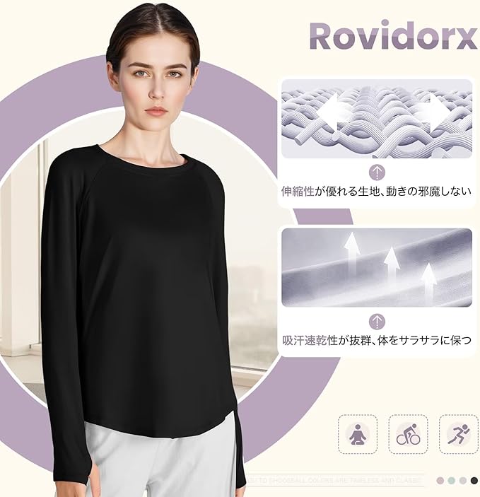 [Rovidorx] ヨガウェア トップス ピラティスウェア 背中開き 長袖 tシャツ レディース スポーツ ゆったり 指穴付き ホットヨガ スポーツ ジム フィットネ トレーニング ランニング 美背