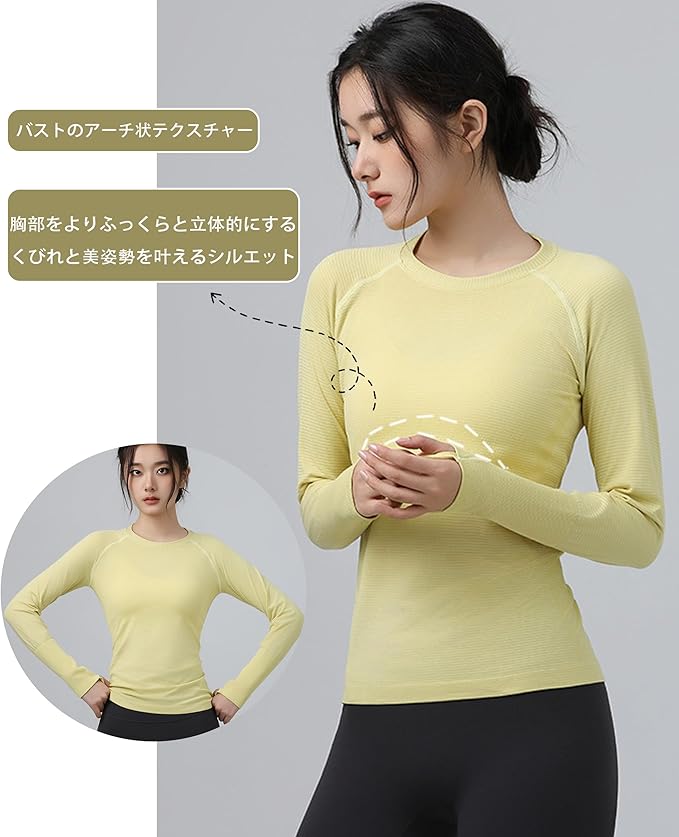 [Karsaer] スポーツインナー レディース 長袖 吸汗速乾 ヨガウェア ストレッチ 体型カバー トップス スポーツロングtシャツ Tシャツ ヨガ トレーニング ジムウェア 春秋冬A0065 | LEAD-SHOP