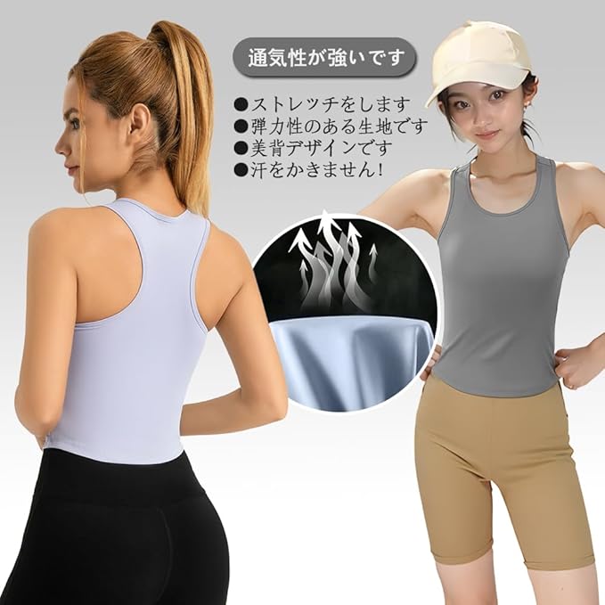 [Siomlana] ホットヨガ インナーシャツ カップ付きタンクトップ タンクトップ レディース Tシャツ トップス ヨガ ブラトップ スポーツキャミソール ラウンドネック さらさら 吸汗速乾 | LEAD-SHOP