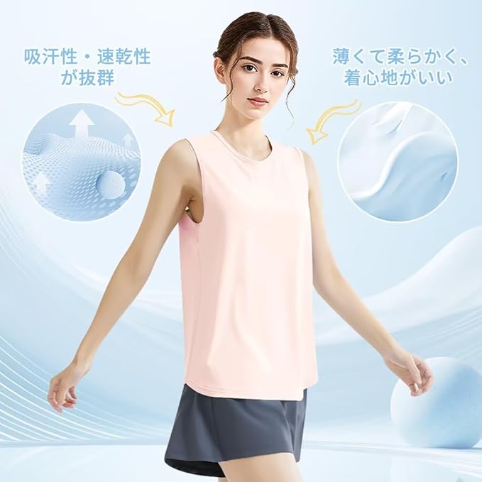 [Rovidorx] ヨガウェア トップス タンクトップ レディース スポーツ 大きいサイズ ピラティス ランニング トレーニングウェア ホットヨガ スポーツウェア ジム フィットネス 冷感 ロング ゆったり 体型カバー