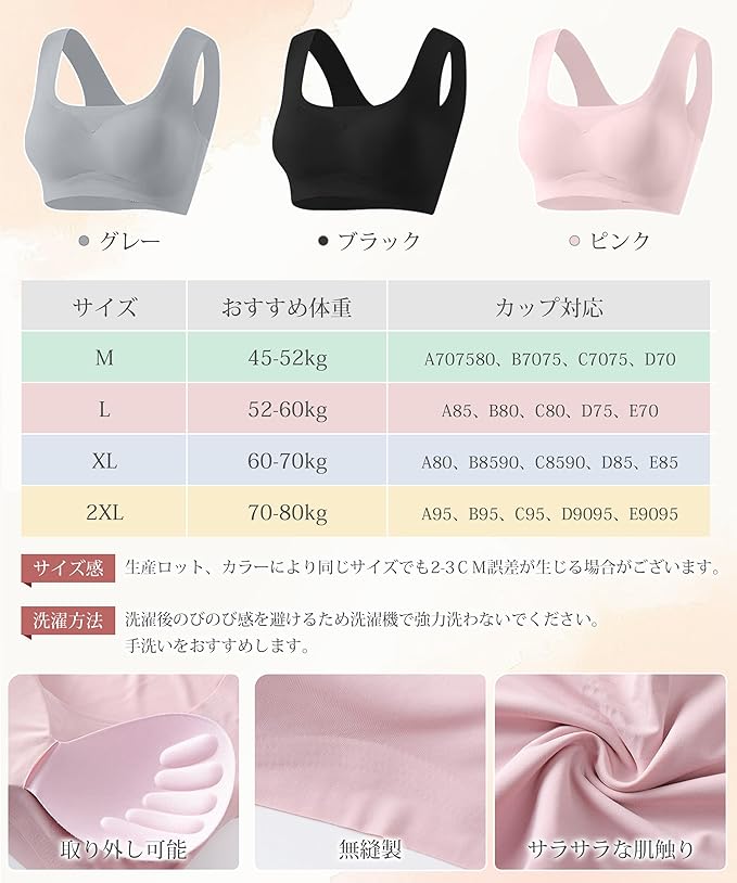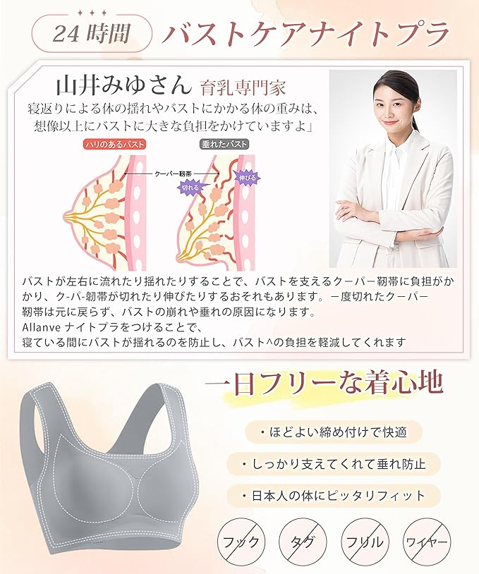 [Allanve] ノンワイヤーブラ スポーツブラ「1枚/2枚セット」【バストケア・24Hフリーな着心地】 シームレスブラ 締め付け感ゼロ ストレスフリー 吸汗性 通気性 快適 ジム ヨガ 無縫製 | LEAD-SHOP