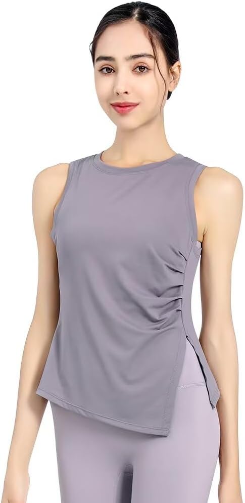 [Guooolex] レディース ヨガタンクトップ ブラック レギュラーフィット シンプル ラウンドネック ノースリーブ バンドカラー 無地 速乾 通気性 通年 タンクトップ