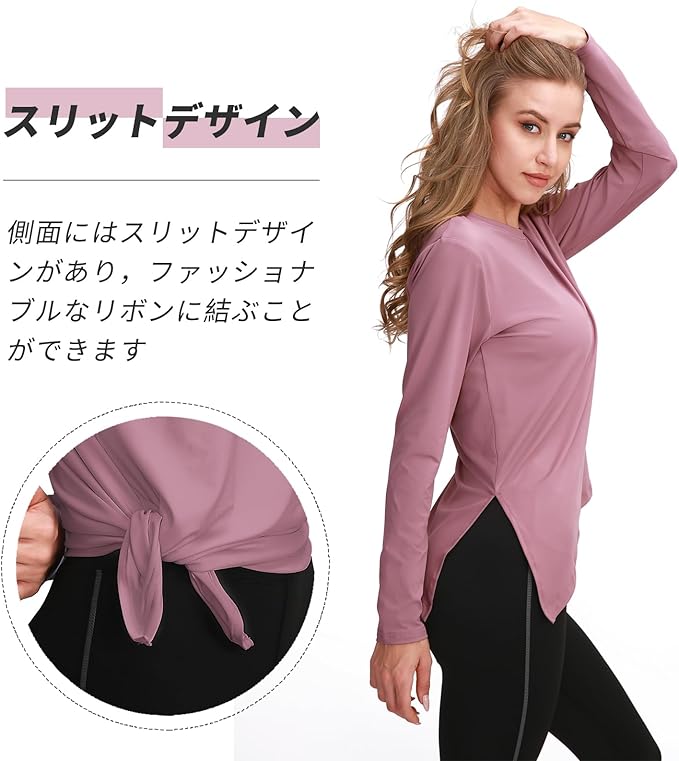 [Cerburny] レディース 長袖 tシャツ 速乾 吸汗 丸首 UVカット 通気 スポーツ ヨガ ウェア ダンス フィットネス 春 夏 秋 冬 ロングスリーブ
