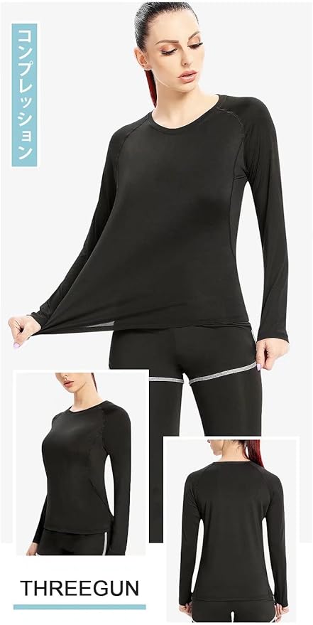 [THREEGUN] スポーツ インナー シャツ レディース 長袖 アンダーシャツ コンプレッションウェア ゴルフウェア トレーニング トップス 速乾 冷感