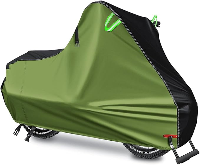 自転車カバー リフレクターテープ付き 厚手生地 自転車用カバー 厚み 防水加工 サイクリングカバー 防風 防塵 防雨 撥水加工 紫外線カット 二重縫製 引裂き防止 盗難防止 収納ポーチ付き XL グリーン 200x100x70
