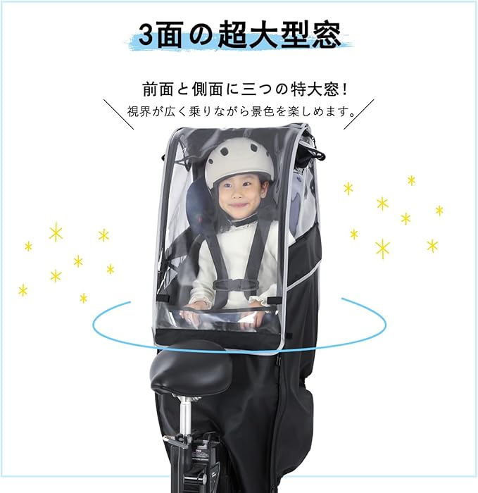 自転車 レインカバー チャイルドシート 後ろ 子供乗せ 防水 広々空間 乗り降り簡単 厚手生地 簡単着脱 リアシートカバー 防寒 雨よけ GyuPit