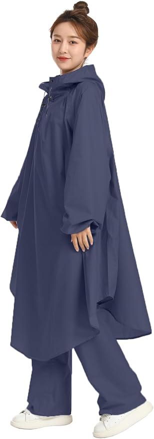 [BUQIREN] レインコート 自転車 レインポンチョ 大きいサイズ 通学 レディース メンズ 大きめ ロング リュック 透明バイザー 防水 雨具 雨カッパ キャンプ 携帯 通勤 ママ 保育園の送迎 袖あり バイク ポンチョ シンプル おしゃれ 収納袋付き