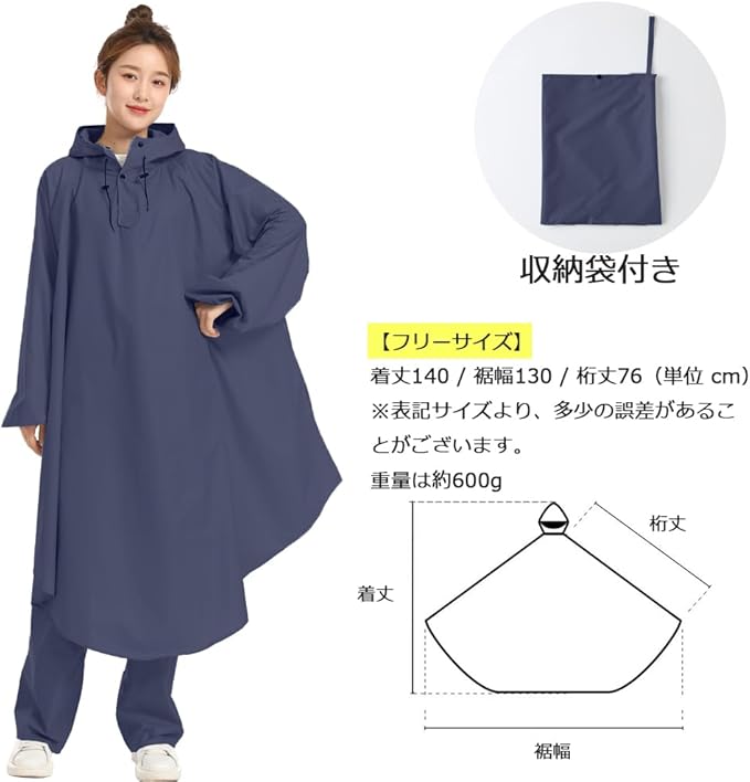【防水&耐摩が抜群】ナイロンオックスフォード素材は防水性、耐摩耗性に優れた素材です。表面には撥水加工、縫い目には防水加工を施しています。*レインコートにの表面には防水コーティングを持っています。風通しがなくて少し新品の匂いを含んで、お手元にレインポンチョが到着しましたら、陰干しされることをおすすめします。 匂いに敏感な方や気にされる方は、1度軽く洗って陰干しすると匂いは軽減されます。