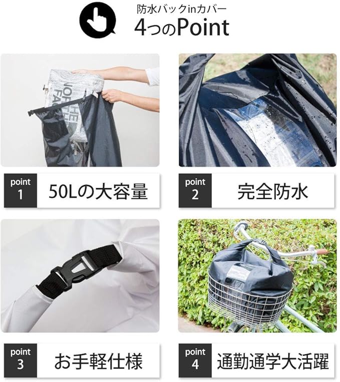 雨の日の通学やお出かけの時に便利!!自転車カゴやリュックにガバッ!とかぶせて、雨から荷物を守ります! 55cmX50cm