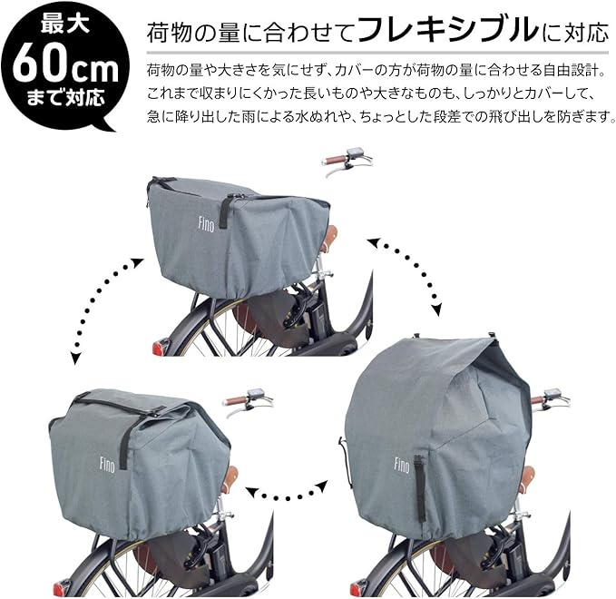 これまで収まりにくかった長いものや大きなものも、しっかりとカバーして、急に振り出した雨による水ぬれや、ちょっとした段差での飛び出しを防ぎます。