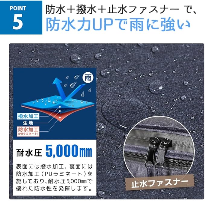 【生地】撥水防水生地・防水&撥水加工で防水性アップ!! 【ダブルファスナー】ダブルファスナー使用で前後から開閉可能! 自転車の運転席側からも自転車の後ろからも大きく開いて出し入れしやすい。