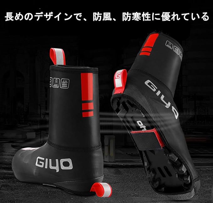 レインシューズカバー 自転車 サイクルシューズカバー 靴カバーメンズ レディース 裏起毛 ストレッチ 防風 防寒 防塵 高視認性 靴の保護 ビンディングシューズ対応 バイクサイクリング アウトドア ブラック
