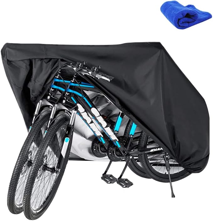 自転車カバー 自転車二台対応 三台対応 自転車 バイク雨よけカバー サイクルカバー 厚手 防水 210D 撥水加工 UVカット 風飛び防止 雨雪対応き 盗難防止 2台用/2台分 3台用/3台分 クロスバイク カバー ロックホール/収納袋付き