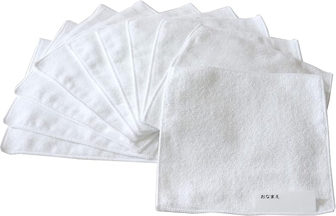 ハンカチタオル13cmサイズ【ともだち】 10枚組 (おなまえネームタグ付き)ホワイト