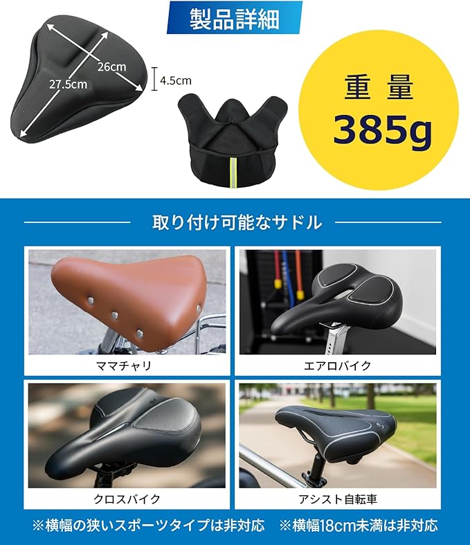 【理学療法士監修】 サドルカバー サドル クッション 【お尻が痛くない】 自転車 防水カバー付き ママチャリ クロスバイク エアロバイク スピンバイク 電動自転車 椅子カバー 反射板付き 超肉厚 大きい マジックテープ仕様 GOSEON