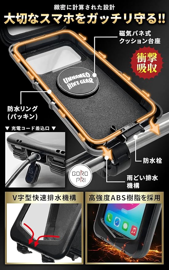 自転車 スマホホルダー 防水 バイク 自転車用 原付 雨除け 防水スマホホルダー 【マグネット式だから快適】 耐衝撃 角度調整が自由自在 超高感度スクリーン 防塵 防汚 7インチ以下対応 (Aタイプ(ハンドルバー))