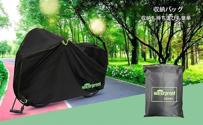 バイクカバー 防水 屋外収納 自転車カバー 雨 日差し 紫外線 防塵 風 収納バッグ付き マウンテン ロードバイク/電動自転車用 (210D ブラック+グリーン)