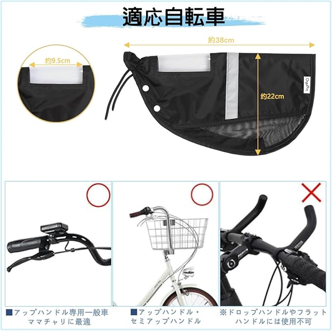 適応自転車:アップハンドル・セミアップハンドルに適用。※ドロップハンドルやフラットハンドルには使用不可