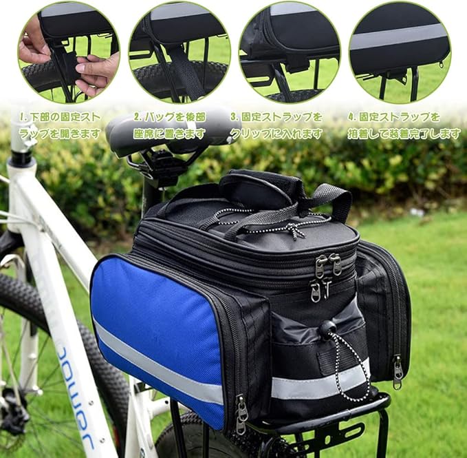 【3WAY使用可能】自転車リアバッグだけでなく、ハンドルとショルダーストラップを使用すれば、 ハンドバッグやショルダーバッグとしても使用できます。 レインカバーもついて、雨の日も濡れる心配はありません。