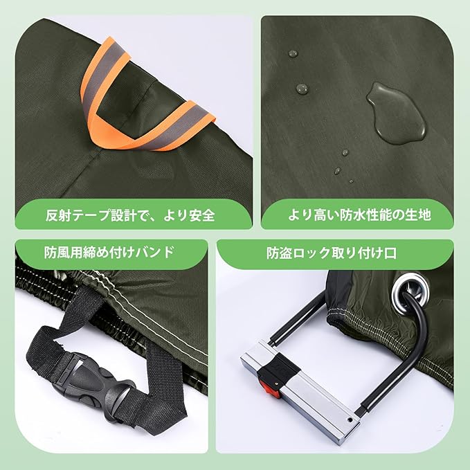 自転車カバー 防水 防犯 29インチ対応 厚手210Dオックスフォード生地使用 破れにくくUVカット ワンタッチバックル&鍵穴付き 大雨・紫外線・ホコリから自転車を全年保護 ロードバイク マウンテンバイク 電動自転車 対応 グリーン