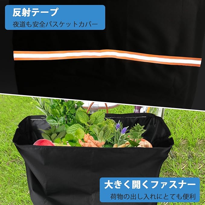 自転車かごカバー 防水 前/后かごカバー バスケットカバー 厚手 丈夫 大きめ 500D サイズ調節可能 大容量 反射テープ 両開き式 雨 通勤 自転車・電動アシスト車対応 取り付け簡単 収納バック付