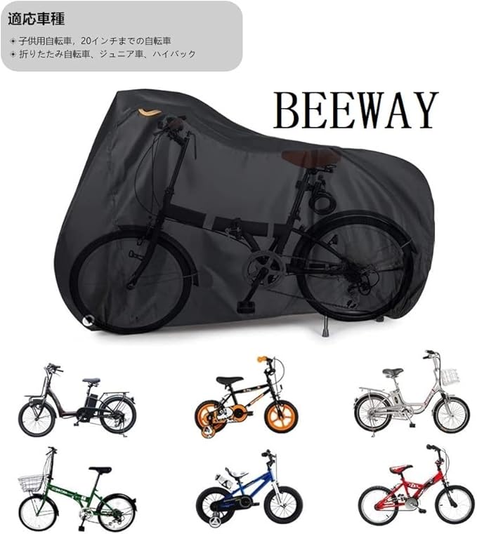BEEWAY自転車カバー 子供用、210D ナイロン 厚手 防水 防塵 UVカット防雨自転車用カバーマウンテンバイク ロードバイク適用ロックホール収納袋付きサイクルカバー