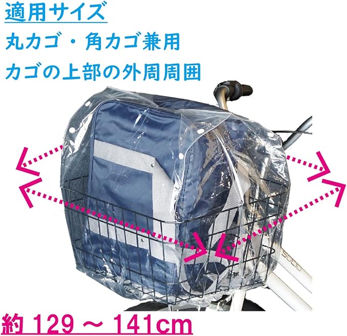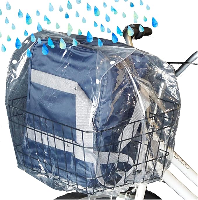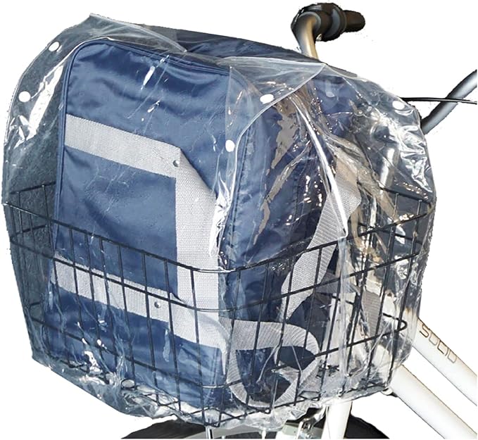 自転車 前カゴ カバー ワイドサイズ イニコライフ 防水 厚手 クリア素材 雨 梅雨 汚れ 荷物 飛び出し 落下 ひったくり 対策 防止 サッとかぶせるだけ 取り付けカンタン 高さ調整可能 固定ゴム付き 持ち運べる 収納袋付きで便利